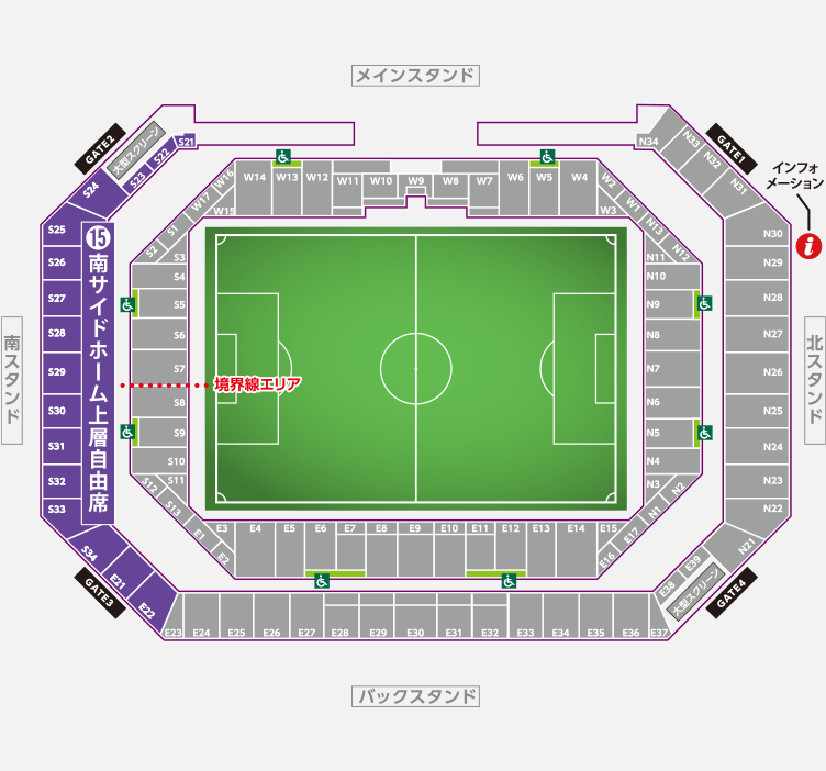 ※南サイドホーム上層自由席はビジターグッズの着用不可エリアですのでご注意ください。