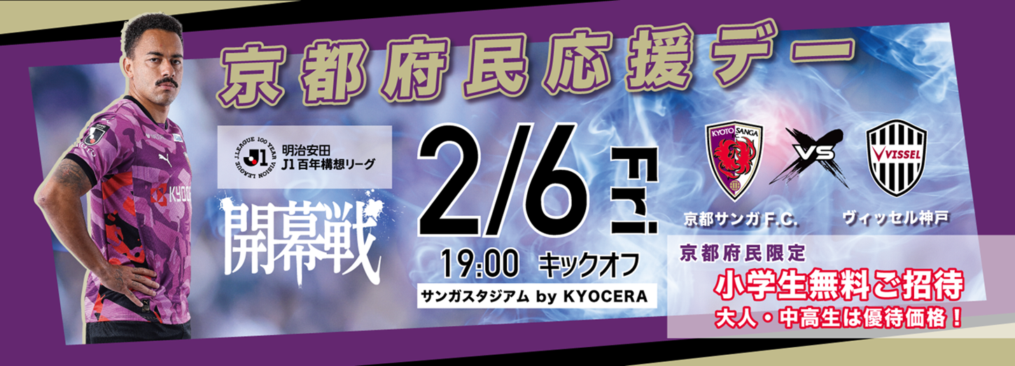 京都サンガF.C.は、明治安田J1百年構想リーグ開幕戦において、「京都府民応援デー」を実施いたします。