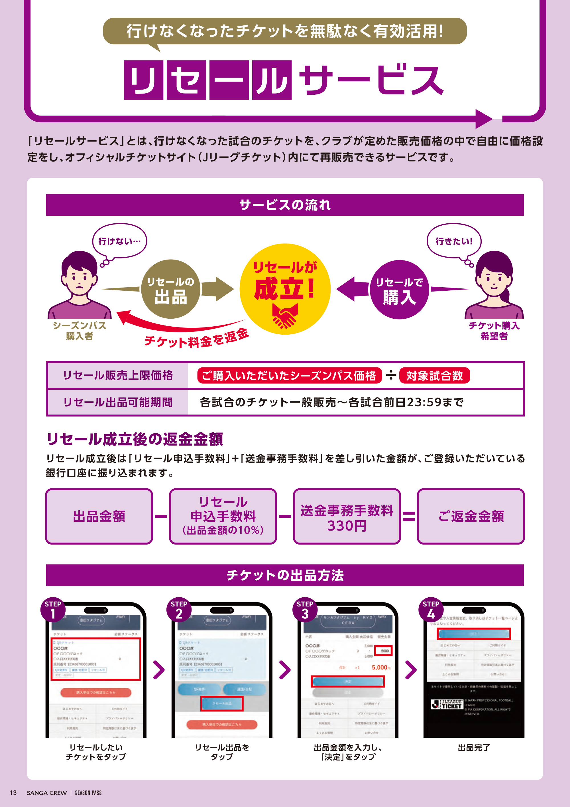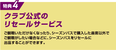 シーズンパスにて確保した座席をリセールに出品することやご家族・ご友人等に譲渡していただくことで、ご本人以外もご利用いただけます。