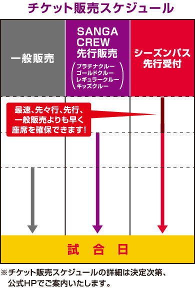 1.5シーズンパスのご購入者は、百年構想リーグのプレーオフラウンドを「シーズンパス対象外試合の優先購入権」として、最も早いタイミングでチケットをお買い求めいただけます。